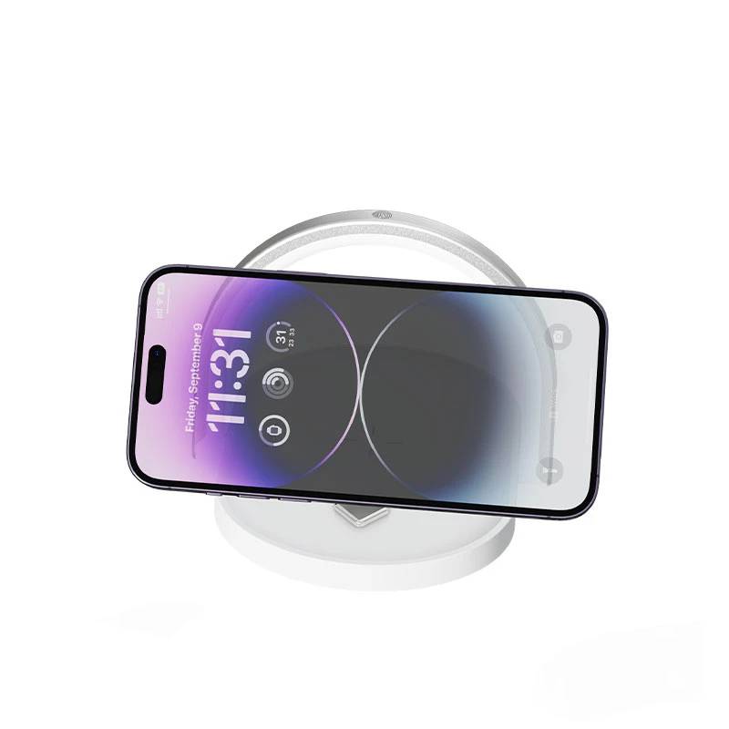 قابلیتهاپشتیبانی از شارژ سریع، سازگار با گوشیهای مجهز به فناوری شارژ بیسیم (Qi) , چراغ LED ( با توان 3 وات) و قابلیت تنظیم در ۳ سطح نور، طراحی چندکاره با بازوی متحرک ۱۸۰ درجه، کنترل لمسی نور، فاصله شارژ کمتر از ۱۰ میلیمتر، طراحی خاص برای استفاده روی میز خواب یا میز کار، محافظت در برابر دما و جریان اضافی، پایه ضدلغزش